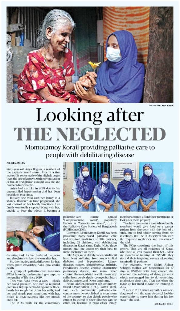 প্যালিয়েটিভ কেয়ার সোসাইটি অ বাংলাদেশ একটি দাতব্য, অলাভজনক এবং অরাজনৈতিক সংস্থা যা বাংলাদেশের সমাজকল্যাণ মন্ত্রণালয়ে নিবন্ধিত। এর লক্ষ্য হল দ্রুততম সময়ের মধ্যে দেশব্যাপী প্যালিয়েটিভ কেয়ার প্রতিষ্ঠা এবং বিকাশ করা।